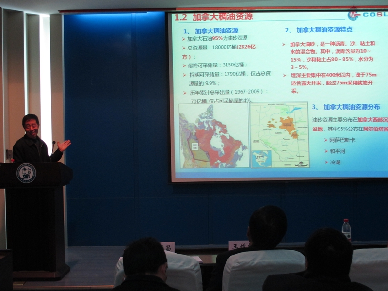 开幕式上,张善文作了题为“胜利西部勘探实践与认识”的报告,王增林作了题为“低渗透致密油藏开采技术”的报告。中海油服生产事业部副部长赵利昌和中石油国际勘探开发公司项目主管明海会则分别作了题为“加拿大稠油资源现状及面临的技术挑战”与“中国与中亚油气合作现状与展望”的报告。
