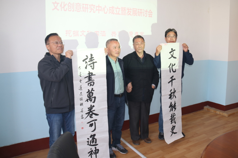 著名书法家王运昆先生为中心成立泼墨题词:文化千秋能载史,诗书万卷可通神。中心聘请我校文学院蒙坚副教授为主任。蒙坚表示,文化创意研究中心经过一年多的筹备,得到了多方的支持和帮助。今后将有效地开发、挖掘东营本土文化资源,打造东营市的文化名片。