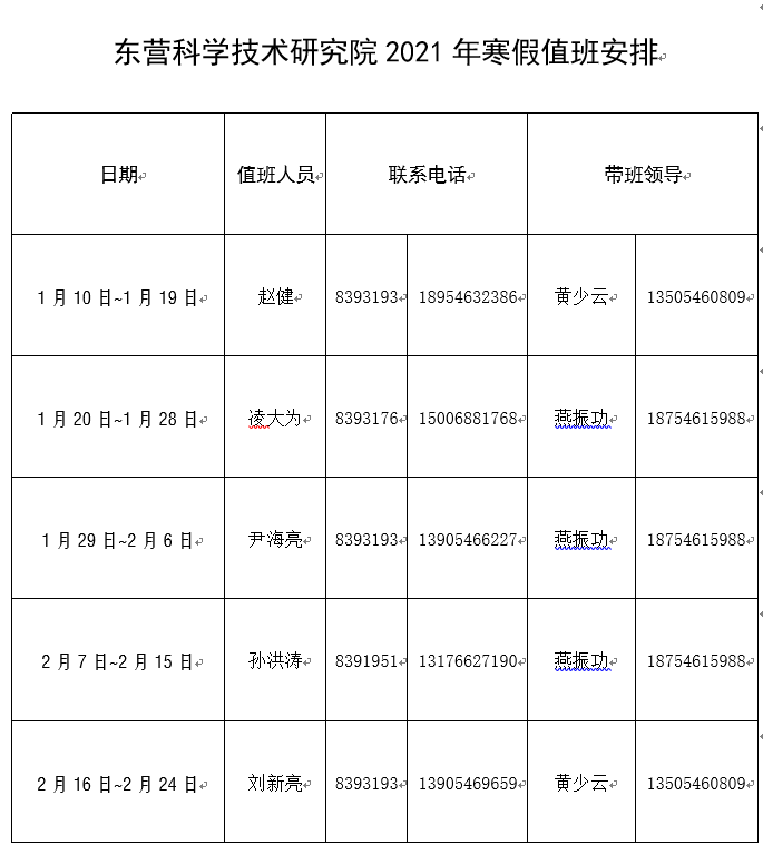 必赢3003no1线路检测中心2021年春节假期值班安排