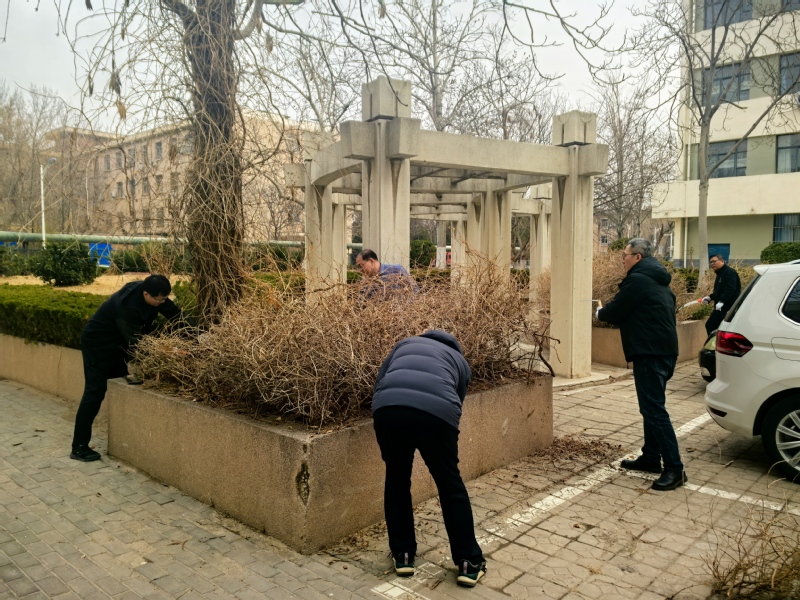 活动在炼制馆西门篮球场拉开序幕。投篮比赛首先点燃现场热情,经过半小时激烈角逐,王炜同志获得定点投篮比赛第一名,展现出科技工作者奋勇争先的精神风貌。随后,全体人员转战炼制馆东门花坛区域开展环境卫生整治。党员们佩戴党徽亮身份,工会会员身着运动装显活力,大家手持铁锹、垃圾夹等工具,清除了花坛区域杂草、枯枝、垃圾等,经过一小时劳动打扫完毕,使花坛区域焕然一新。